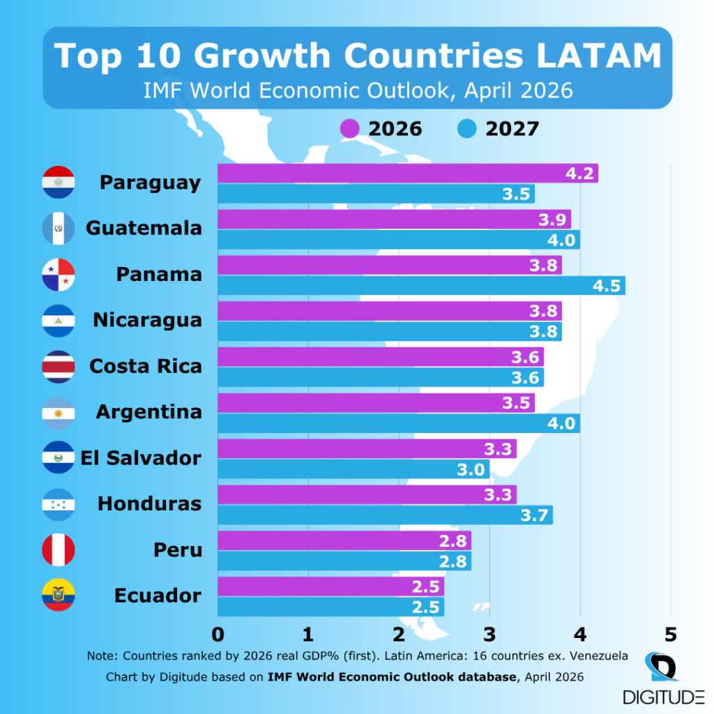 Top LATAM Growth Countries; Panama 3rd with 3.8% 📈
